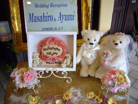 そして、当日、披露宴会場入り口でのベアたちの様子です。