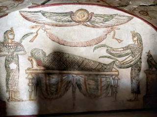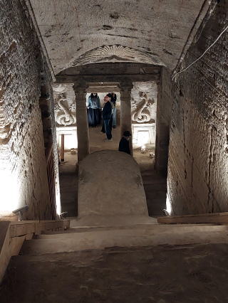 カタコンベ(Cata-Comb) カタコンベ(catacombe)とは地下にあるお墓のことで、アレクサンドリアのカタコンベは、 地下3階建ての建物で深さは30メートル あります。元々は裕福な一家の私的な墓所でしたが、三世紀以降は共同墓地として拡張され、300体以上のミイラが埋葬されていたと言います。