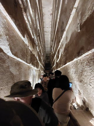 「上昇通路」と「大回廊」と合わせて約90mくらいの上り。結構な傾斜で、1.2mしか高さがなく、ずっと、屈んだ姿勢で進みます。幅も狭く、人とすれ違うの時も、体を横にしないと