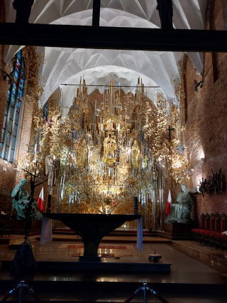 14世紀から16世紀に聖ブリジットに捧げる教会として建立。第二次世界大戦では、かなりの損傷を受けました。教会には琥珀で作られているマリア像があり、黄金で輝いてあるその姿は神秘的です。グダニスクは琥珀の町としても有名です。市民たちの寄付によって琥珀は少しずつ増えているそうです。またこちらの教会の神父さんは連帯運動に理解を示していたそうです。それにより、連帯は教会の地下室を秘密集会場として利用していました。