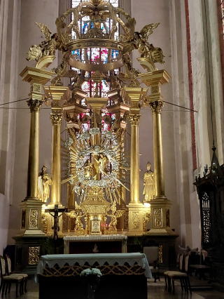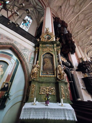 聖母マリアの被昇天教会は旧市街広場の北西にあり、13世紀から14世紀にかけて建てられたゴシック様式の建築物。教会内部の十字架のキリスト像や主催壇、27mの高さを持つかまぼこ型の内部天井など、その荘厳な雰囲気には圧倒されます。 聖母マリアを讃える教会なのでマリアの像や画が多いのですが、中でも必見なのは黒いマリアの像。アウシュビッツで囚人の代わりとなって餓死刑に行ったコルベ神父の肖像画もあります。