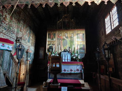 正式名称は「大天使ミカエル聖堂」です。こちらの教会は内部の装飾が特に素晴らしく、壁や天井には15~16世紀に描かれたユニークな図柄やモチーフは必見の美しさです。また、ゴシック様式の3連祭壇や十字架、絵画や彫像等、美しい美術品も見る事が出来ます。