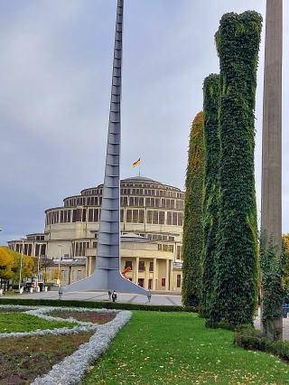 ヴロツワフは当時はプロイセン王国(現在のドイツの前身)の領土で、百周年というのは、1813年に行われたライプツィヒの戦いでプロイセンとヨーロッパ連合がナポレオン率いるフランス軍に大勝利したことから100年経過したことを記念したもの。