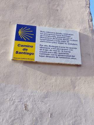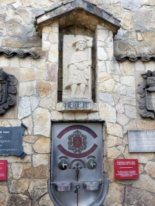 壁に蛇口が二つあり、一つは水、一つは赤ワインが出てきます。看板には「1000年以上に及びイラーチェ修道院を通る巡礼者たちは温かいもてなしを受けてきた。それを受け、ボデガス・イラーチェ社も巡礼者たちが無事サンティアゴ・デ・コンポステーラに到着できることを願い、一杯のワインを振舞うものである」と書かれている。