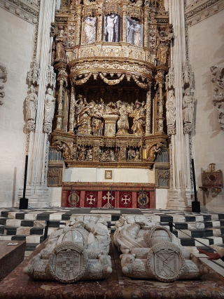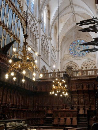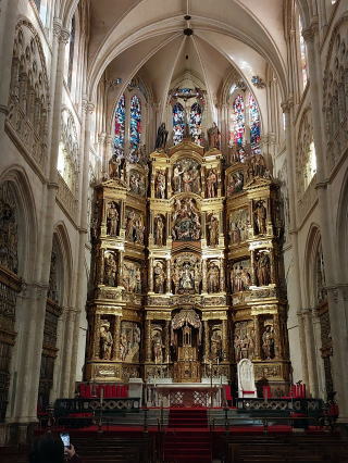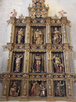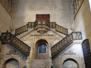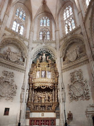 グラダナを奪回したベラスコ元帥を記念して作られたもので、世界遺産のブルゴス大聖堂の中で最も美しく華麗な礼拝堂としてとても重要なものです。中央にいるのはベラスコ元帥夫妻といわれています。実はこの礼拝堂の祭壇の前には「マグダラのマリア」の絵があるのですが、一部レオナルド・ダビンチが描いた部分もあるとのことです。