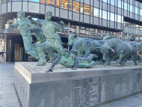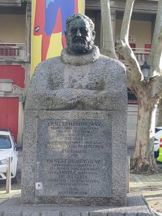 闘牛場の入り口付近には、サン・フェルミン祭の牛追いに魅了され『日はまた昇る』でサンフェルミン祭とパンプローナを世界的に有名にした、ヘミングウェイの功績をたたえた胸像がたっています。