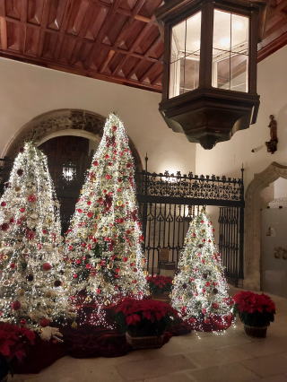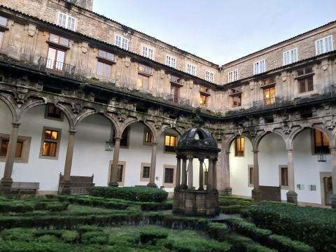 サンティアゴ巡礼路の終着地であるサンティアゴの大聖堂の斜め向かい、オブラドイロ広場に面してパラドールは建っています。1486年、カトリック君主フェルナンド二世とその妻イサベルがサンティアゴ・デ・コンポステーラを訪れた際に、巡礼者たちのための王立病院として建築することを決定、王室建築家が1501年から10年の歳月をかけて完成させた建築です。荘厳な外観、美しい回廊、エレガントなサロンや客室、石造りの重厚なレストランなど、豪華に装飾された館内はまさに5つ星の風格を感じさせます。