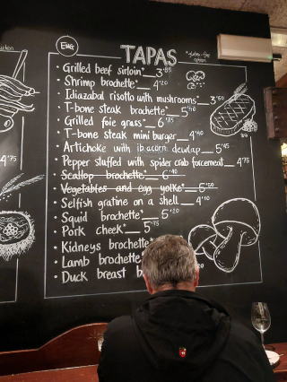 <感想>物価の高いヨーロッパにしては比較的庶民的価格。ビール3ユーロ、ピンチョ3~5ユーロ程度でワイワイできます。