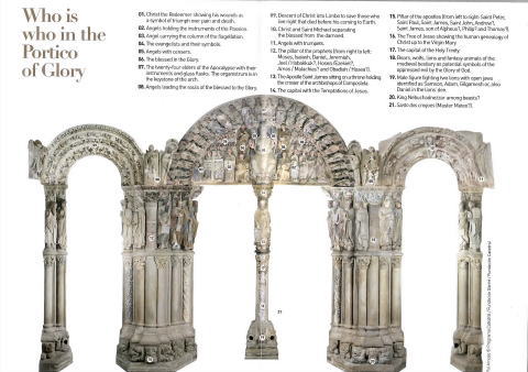 彫刻家のマテオが1188年に完成させたロマネスク様式の傑作で「栄光の門」と呼ばれる。中央アーチは正義の人々の最終目的地である栄光を表現しており、そこには復活したキリストが鎮座しています。10年にわたる保存改修工事を経て、このロマネスク様式の傑作は、元来の美しさと色彩を取り戻しました。